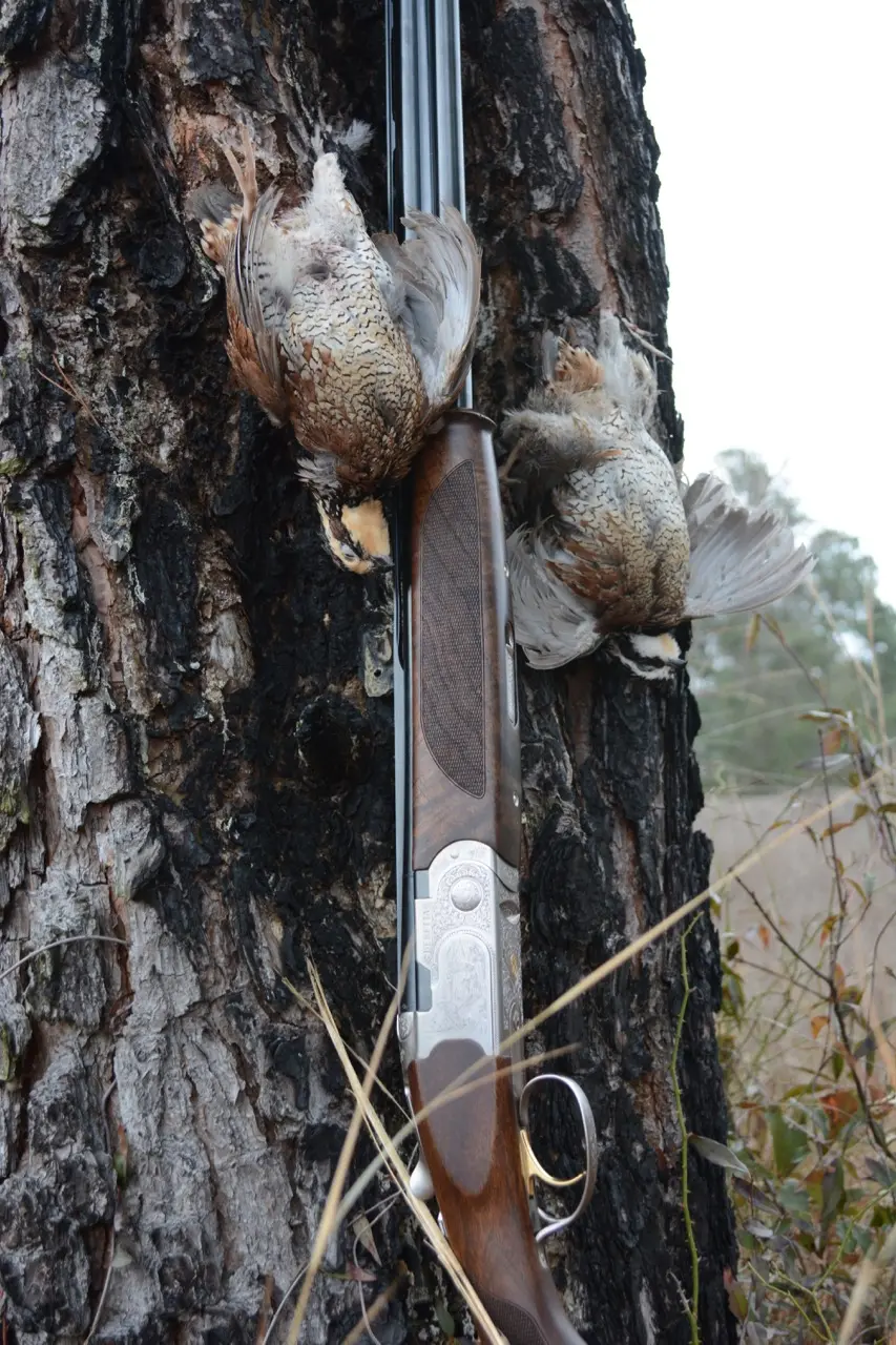 It’s a signature component of a George Hi hunt and a particularly pleasing one. This is no pine monoculture. We move in and out of quail habitats, from small fields of partridge pea and sorghum through pinewoods and pine savannahs where greenbrier and turkey oaks provide cover. There’s a stand of longleaf pine underlain by wiregrass—the classic pairing of Old South-style quail shooting—and the occasional rough ground of dead branches and slash from recent habitat work. We drop birds in stands of dog fennel and open swaths of bunch grasses and pine needles and work the dark edges of creekbottoms that snake through tangled hollows. It’s rolling, beautiful country—the old fields unfurling like rumpled quilts against distant smudges of dark timber.