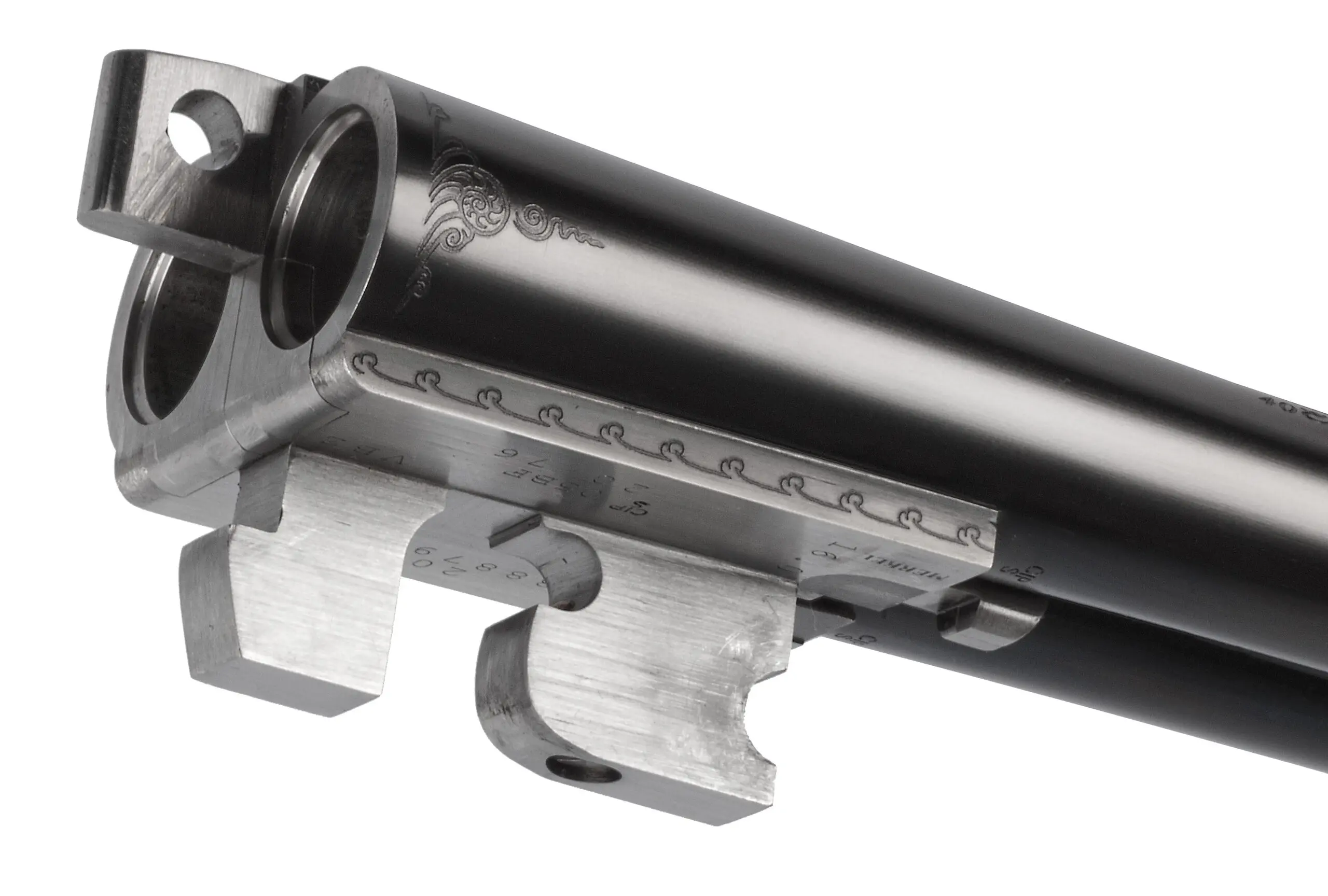At the heart of the 40E lie rust-blued, fixed-choke barrels formed on that cold-hammer forge and joined by monoblock construction with no visible seams. Current inventory includes the choke pairing of Improved Cylinder and Modified (½); ¼ and Improved Modified (¾); and Mod. and Full are also offered. Barrel lengths are metric equivalents of approximately 28” and 26-3/4”.