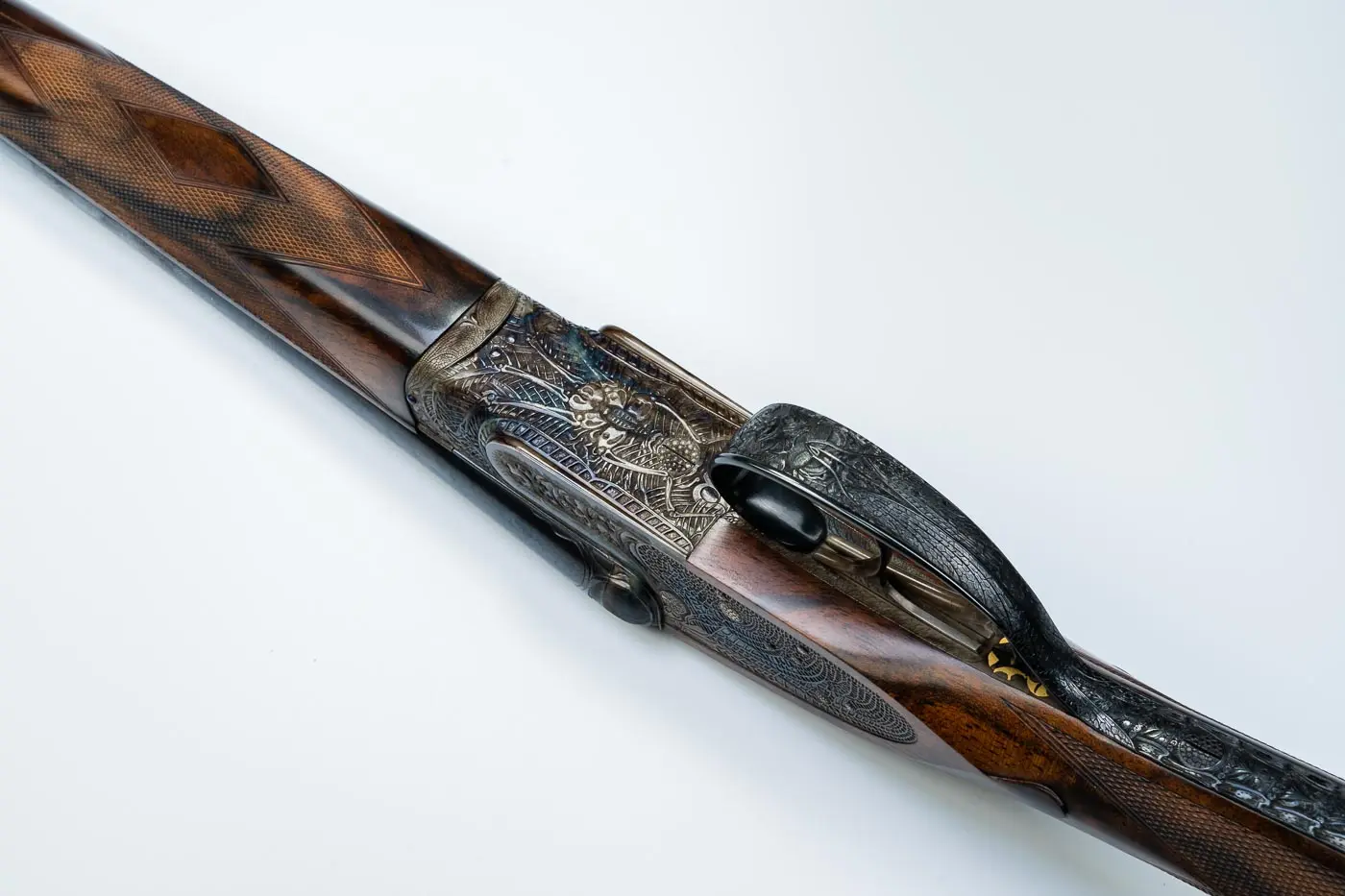 “Colour hardening is all-important in my overall concept, and the engraving and colour should complement each other. Something that has emerged over the years is how well deep carving and colour wear so well together. The guns that I carved and engraved over 30 years ago have worn well, with the colour retained in the lower surfaces. I also use bright-cut engraving that adds to the luster of the colour.