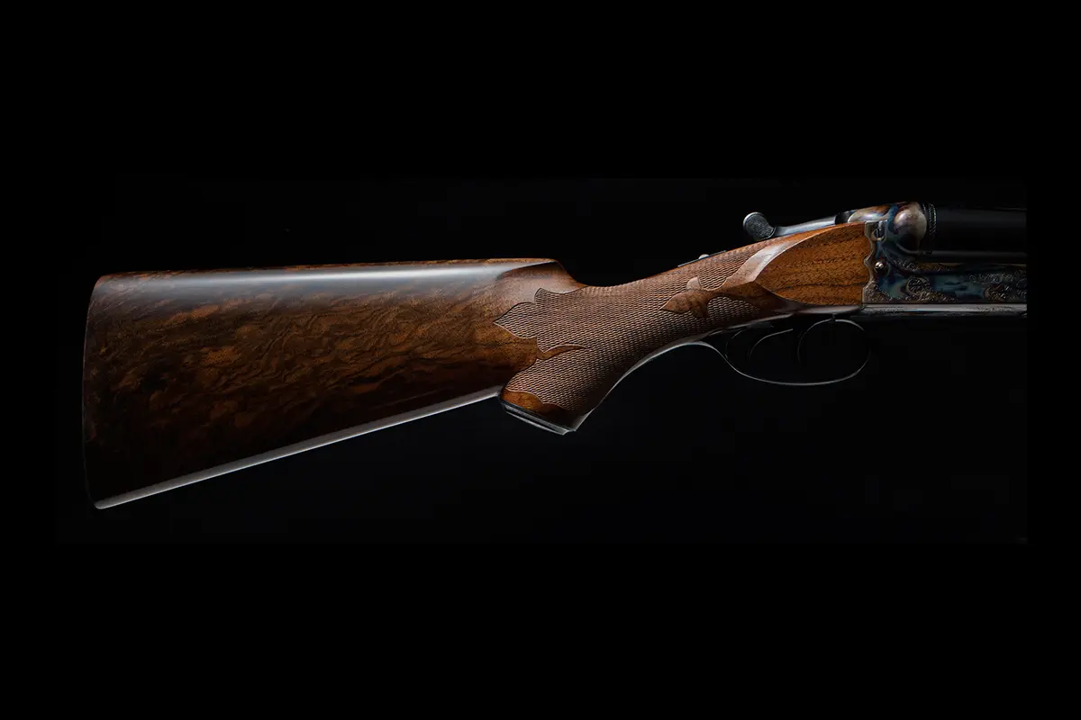 When considering custom gunmaking, many aficionados first look to the UK or Europe for inspiration and quality work. But they should not ignore the American Custom Gunmakers Guild (ACGG), an organization whose members have been raising the gunmaking bar for 35 years. In 2016 and ’17 a group of ACGG craftsmen took a “sow’s ear”-quality 1950s-vintage shotgun and turned it into a proverbial “silk purse.” This latest example in a long line of ACGG fundraising collaborations sold at the Guild’s exhibition at this year’s Dallas Safari Club Convention.