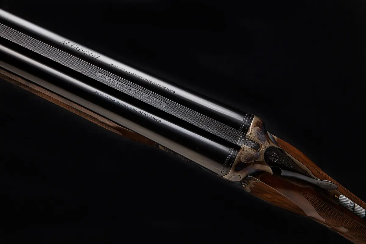 The donor gun started life as a Simson 12-gauge side-by-side made in Suhl, Germany. It was donated by member Mark Beasland of Mark’s Born Again Birdguns.