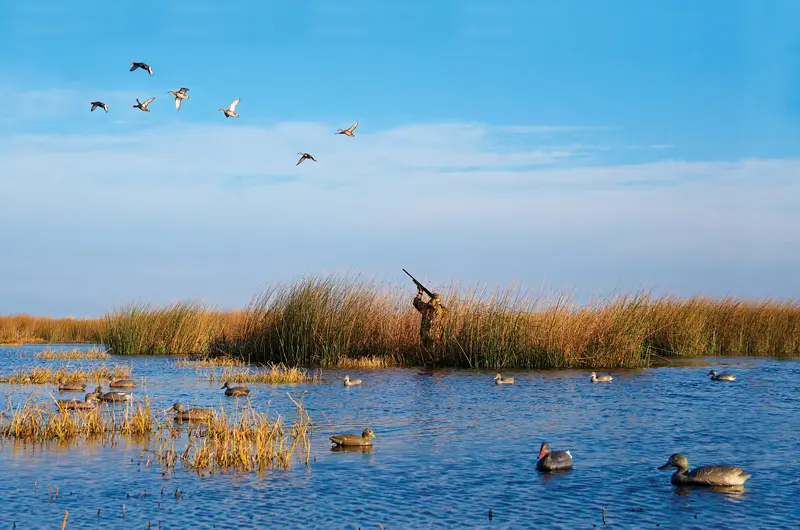 Duck hunters often take up positions in natural cover and enjoy both pass-shooting and gunning for decoying birds.