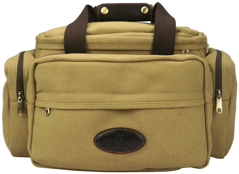 If you’re looking for a rugged and eye-catching way to carry shells and accessories, Kevin’s Canvas & Leather Range Bag is your tote. The bag is made of twill cotton canvas and has leather trim and brass hardware. There is a large main compartment, two zippered side pockets and two zippered front pockets. There is also a cotton-webbing handle and shoulder strap.