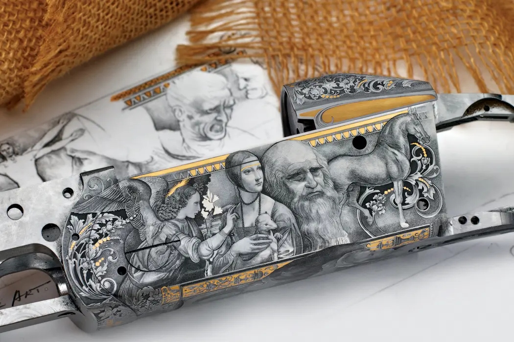 If Creative Art has a raison d’être, it is perhaps best expressed by Marco E. Nobili in his 2001 book Le Incisioni della Creative Art: “The main objective behind the idea to establish Creative Art was to create a team that could offer customers (gunmakers or individuals) a complete, high-quality service while always offering handmade engraving with relatively rapid delivery times, thanks in fact to the larger staff.”