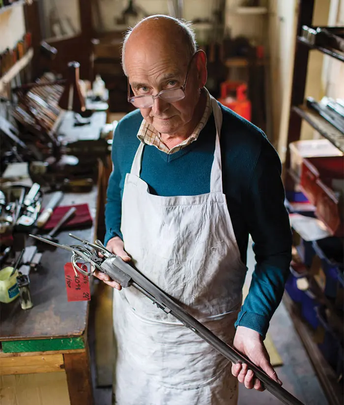 Michael Louca, a Purdey-trained gunmaker and owner of London’s Watson Bros., made barrels for some of David’s early guns and credits David for inspiring his own business model: to remain independent (no outside owners) and to use outworkers only when necessary. “When you own your business,” Michael said, “you can run rings around the bigger firms with corporate owners. Training your own workforce and keeping manufacturing in-house decreases costs, boosts profits, improves efficiency and quality control, and fosters innovation.”