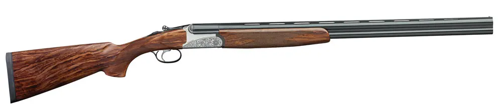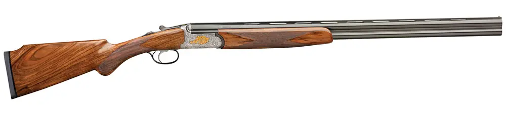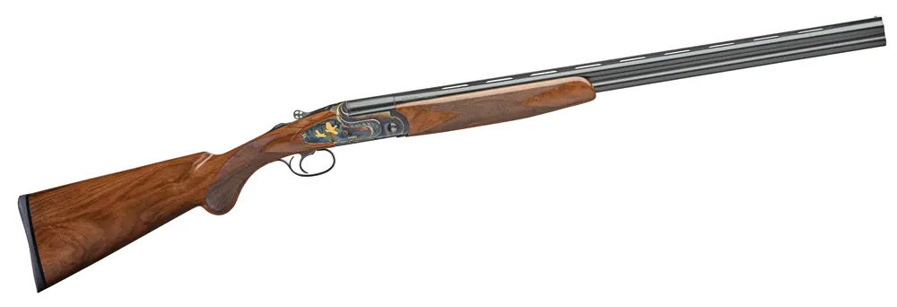 Not as well known as Fausti’s break-actions, the Progress Upland is a soft-shooting, easy-cleaning gas gun. It has a silver receiver embellished with scroll and gold birds, and the stock has Optiwood-enhanced walnut grain. The 12-gauge has a 26-, 28- or 30-inch barrel; the 20-gauge has a 26- or 28-inch tube. Price is $1,700.
