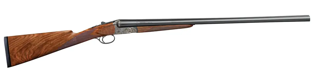A light, trim side-by-side, the DEA is advertised as weighing less than five pounds in 28 gauge, making it an ideal carrying gun. The Anson & Deeley boxlock has a case-colored or coin-finished receiver and scroll engraving. It has a straight stock, splinter forend and single, non-selective trigger. Prices are $3,850 in 12 and 20 gauge; $4,450 in 16, 28 and .410.