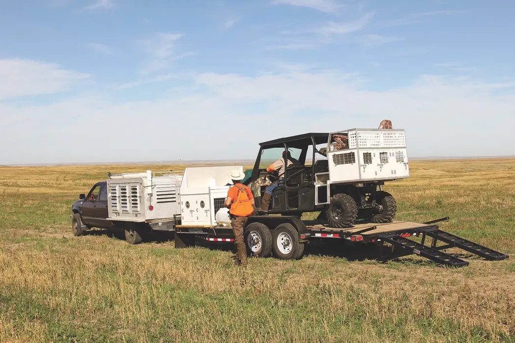 We pulled off of the main road into a vast pasture ribboned with draws and bisected by a fenceline. Lance Knoshal, a Minnesota farmer who helps Steve during his down time, off-loaded the Polaris Ranger that would serve as our chariot.