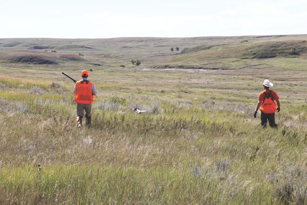 That day I was hunting the Schuh Ranch with head guide Steve Bruns, who, like most of Firesteel’s guides, is a professional dog trainer. Steve and his brother, Dave (also a Firesteel guide), operate Minndakota Kennel, where they breed and train German shorthairs. Steve also runs pointers —“English,” as he calls them—and in his spare time is a rodeo rider. With his chiseled jaw, ever-present cowboy hat, and gait of a man who’s spent countless hours in the saddle, he looks like he could have just stepped out of a Marlboro ad.
