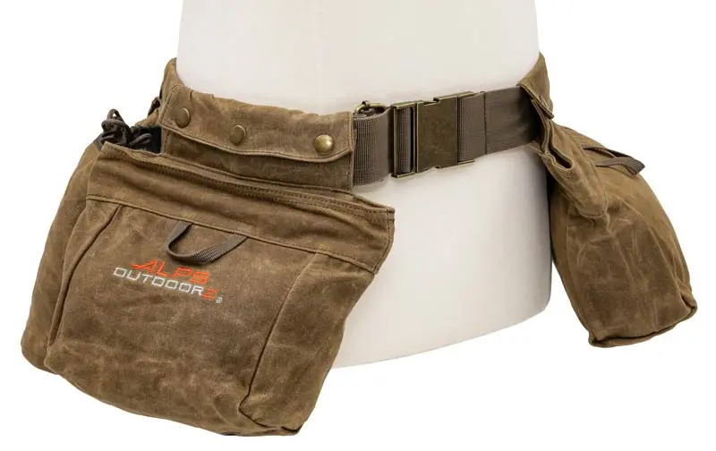 For standing in a dove field, walking the uplands or even a day of clay shooting, the ALPS OutdoorZ Sportsman’s Belt is a versatile system that holds shells, gear and more. Made of waxed cotton canvas, the system includes 2 large “hold-open” shell pockets with grab loops, a large game pouch with a TechMesh bottom for drainage and breathability, and a water-bottle pouch—all of which secure to a 2"-wide waist belt that cinches with a brass buckle. The modular design allows for removing pockets for cleaning and repositioning as desired. Color: Coyote Brown. Weight: 2 pounds 2 ounces. Price: $70.