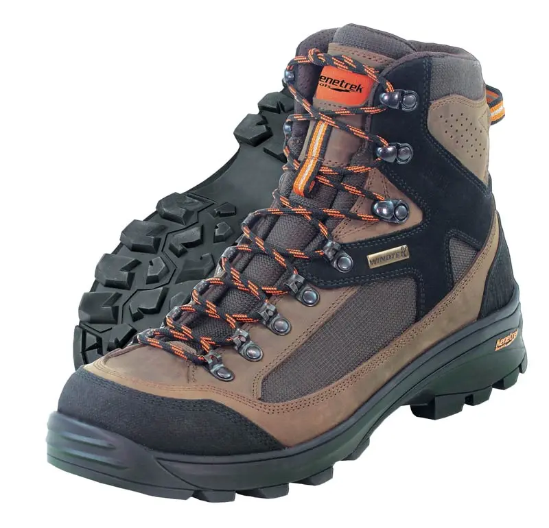 Designed for negotiating serious terrain, Kenetrek Corrie 3.2 Hikers are light yet sturdy. Corrie means “a half-open, steep-sided hollow on a mountainside”—exactly the type of country these boots were designed for. The 7" boots are comfortable and stable, featuring K-straps that tie the base of the heel to the leather-and-nylon padded upper. There is double- and triple-stitching in high-wear areas; a Windtex waterproof, breathable membrane; a 5mm nylon midsole; and rubber toe and heel caps for abrasion resistance. Grapon outsoles provide plenty of traction.
