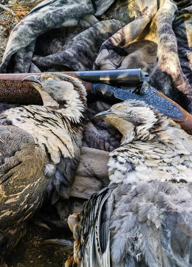As October neared its end, my urge to travel came to a boil. Nice weather prompted me to head to Nevada for Himalayan snowcock. Plenty of sunshine and daily temps in the 40s and 50s up in the thin air were stark contrasts to 2018, when winter had showed up early. I spent the week focused on snowcock, blue grouse, fly-fishing and relaxation. My mood soared. Not even a sock failure and corresponding blister on day one could dampen my spirits. Of course, taking a pair of Himalayans that same day helped. Two superb dinners allowed me to resume hunting once my foot healed and after a lazy day of fishing for brook, rainbow and tiger trout. I was unable to take another snowcock before being joined by Travis Warren and Jay Beyer toward the end of the week.