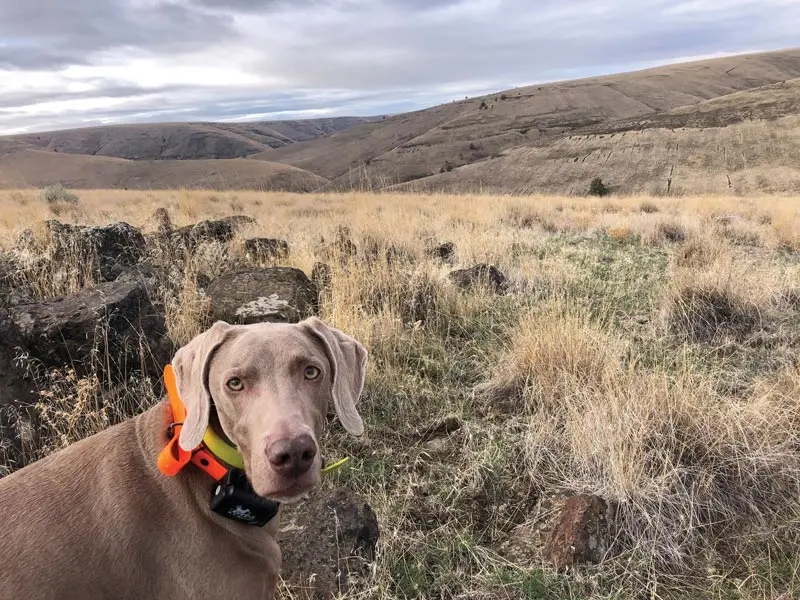 But having just knocked down a double over the most remarkable point, I excitedly voice-texted my longtime chukar-hunting partner from atop Devils Backbone, high above brooding canyons splintering off at shadowy angles. Seven years earlier a nine-week-old pick-of-the-litter Weimaraner had come home with me, and I’d introduced her to wild chukars at her own speed, let her learn on the job. My one basic rule is to never reward a pup by shooting a bird that wasn’t properly pointed. Java—Silver Rain’s Jump-the-Fence Jumpstart Java, to be formal—blossomed into the most adroit chukar dog I’ve yet had, and that includes some fine company. Excellent hunting grounds, years of abundant birds and many days afield melded fortuitously, flawlessly, with her pedigree and disposition.