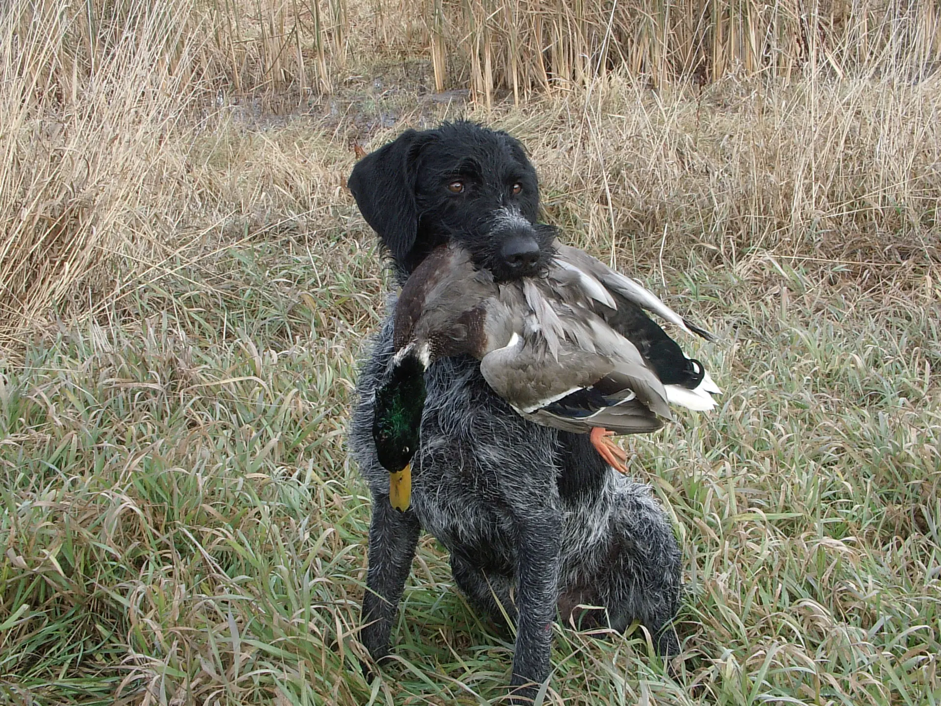 Deutsch Drahthaar with a North Dakota drake mallard. Submitted By: Shooting Sportsman Magazine Back To The Gallery