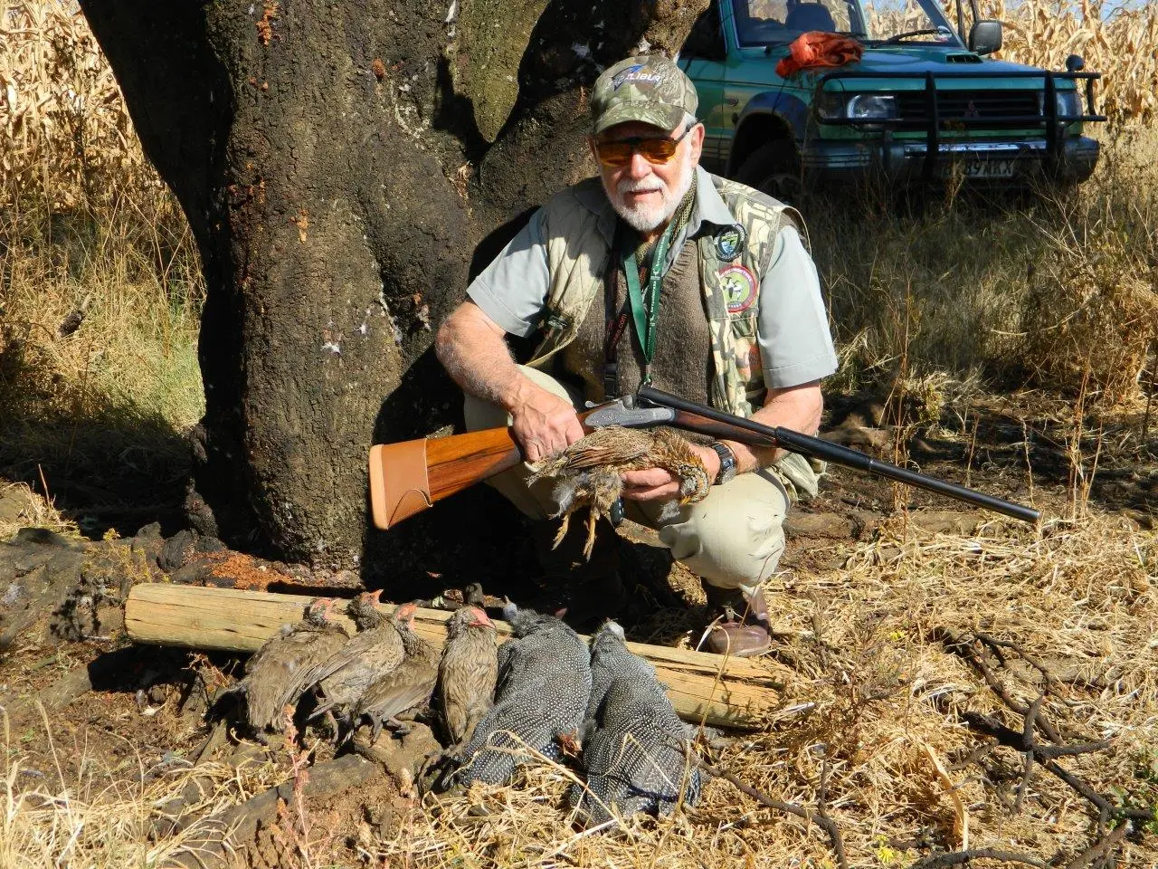 Neil with a mixed bag of Swainson's, Orange River Francolin and Guineafowl harvested in Northwest Province, South Africa. Shotgun used is a 20g Prandelli SxS.