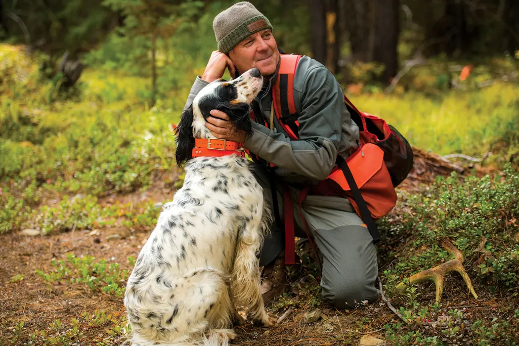 With his operation nestled in the heart of endless bird cover, Tim says that the day’s most complex decision is whether to turn left or right at the bottom of the driveway. Whichever way he turns, the hunting promises to be remarkable and the landscape more remarkable still. On our final day we followed Tim’s setters up and down the mountainsides until our legs were like jelly. We’d shot some birds and a heap of photographs, and feathered feet were poking out the sides of Tim’s game bag. The afternoon shadows were getting long, but on a sidehill bench setter Maggie swung and stopped and looked up into the fir tops. There was a bird up there somewhere, but it had blended into the needles and broken light, and whatever flush was to happen would come unannounced. Tim wandered in and looked up, his gun open. He craned his neck and started to say something, and as he did the bird came out. The ruff stayed high and came over us, roughly upslope and framed against treetops and sky. How shooter and photographer managed to choreograph our sentiments I’ll never know, but as the gun came up and the bird came over, the shutter fell and the moment stood still. What I’ll remember of the Yaak is falling feathers, the thump of flesh on grass and a burnt-powder smell. But, of course, I’ll mostly remember the smiling man with the two white dogs who introduced me to this place.