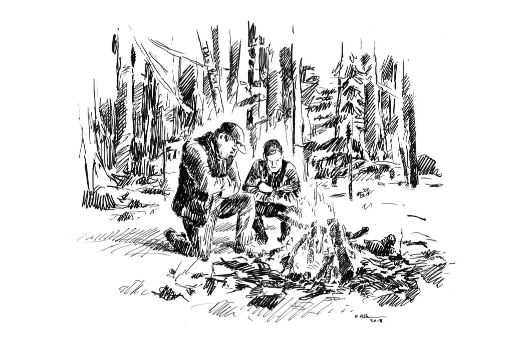Tom lived nearby, and when he went home to get firewood and a sleeping bag, I kept searching and calling. The snow eventually stopped, and the stars came out—and so did Blake, which solved half of the missing-dog scare. Our hope restored, Tom and I built a roaring fire and waited until nearly midnight for Ragan. After adding the last of the wood to the fire, I laid out my hunting vest and a pan of food and hoped the coyotes wouldn’t find it—or Ragan. Then we went to Tom’s house, where neither of us slept well.