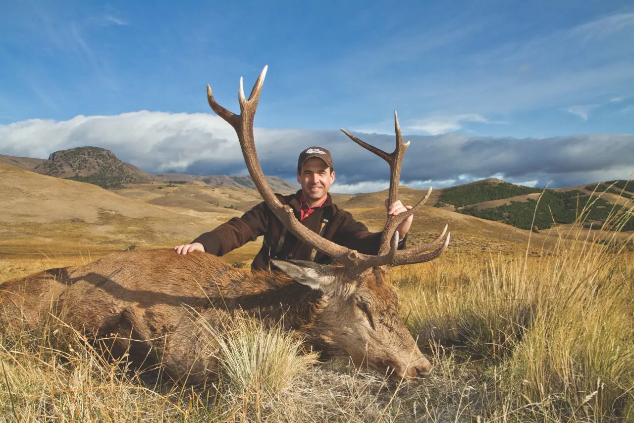 Back at the lodge we enjoyed a traditional asado (barbecued meat and lots of it) before heading out in the drizzling rain for an afternoon hunt. We had driven only 20 minutes when we spotted a herd of 30 hinds, four satellite stags and a trophy lording over them. The deer were in a draw that would allow an approach from behind a steep hill, so we parked the truck and bailed out.