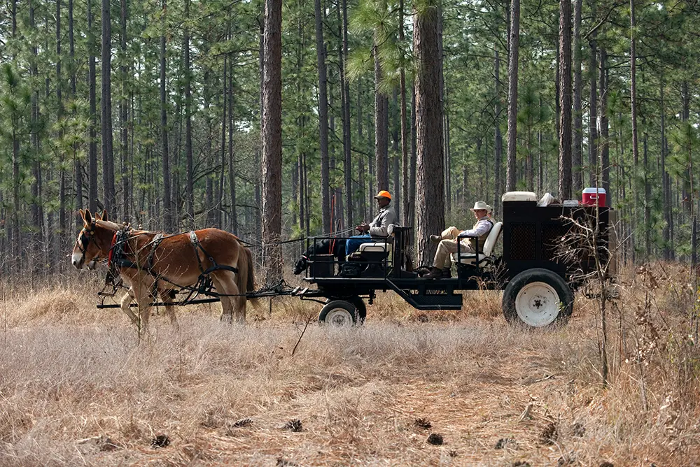 We have access to 6,000 acres of carefully managed habitat of classic longleaf pine forest with wiregrass understory. The cover holds thousands of birds and allows for relatively easy walking, so hunters can concentrate on their shooting instead of navigating difficult terrain.