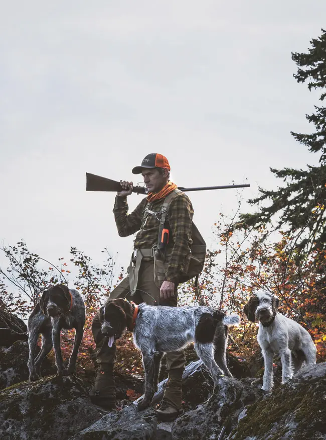 The sound of tumbling rocks echoed through the dense fog, the force of gravity causing the only movement on the mountain that morning. The hillside was steep, the earth loose, sliding and tumbling away beneath my boots as I made my way across the mountainside. I could be forgiven for thinking it felt a lot like chukar hunting; however, this was a different pursuit altogether. The terrain certainly was the same as in chukar country—the mountain climbing straight up and, if you fell, straight down. The gradient, however, was not the only challenge, as I was entangled in thick brush that resembled that in the grouse woods.