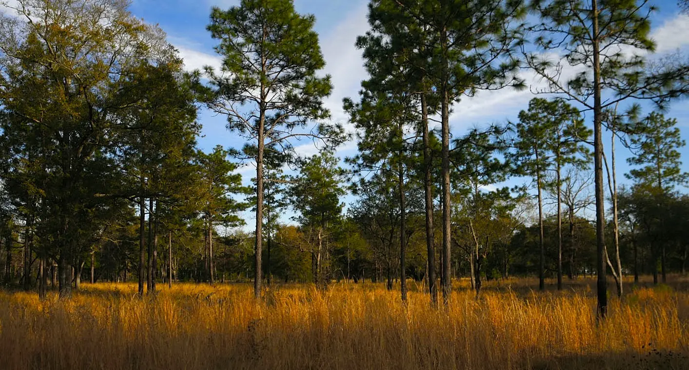 Most hunting is done in the gently rolling pine savannas that border the Flint River. Annual prescribed burns and open longleaf pine forests enable the growth of ground cover such as wiregrass and broomsedge. It's this ground cover that provides the necessary food and protection that help sustain elevated bird populations in the region.