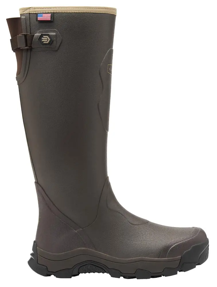 Based on looks alone, the LaCrosse Alpha Evolution was the first boot I grabbed. Made with Vibram XS TREK rubber compound for better traction and with an EVA rubber midsole, a fiberglass shank, a polyurethane footbed and a heel kick, this boot has the features to match its looks. Natural rubber over neoprene allows the boot to slip through heavy brush and briars damage-free. A neoprene gusset on the back allows for a tighter fit around the calf. For me, the jersey liner allowed the boot to slip on comfortably, and I left the calf tightener—which required both hands to adjust—in a fixed position. Color: Brown. Sizes: Whole 7 through 15. Height: 17¾". Weight: 5 pounds 13 ounces per pair. Price: $300. LaCrosse, lacrossefootwear.com.