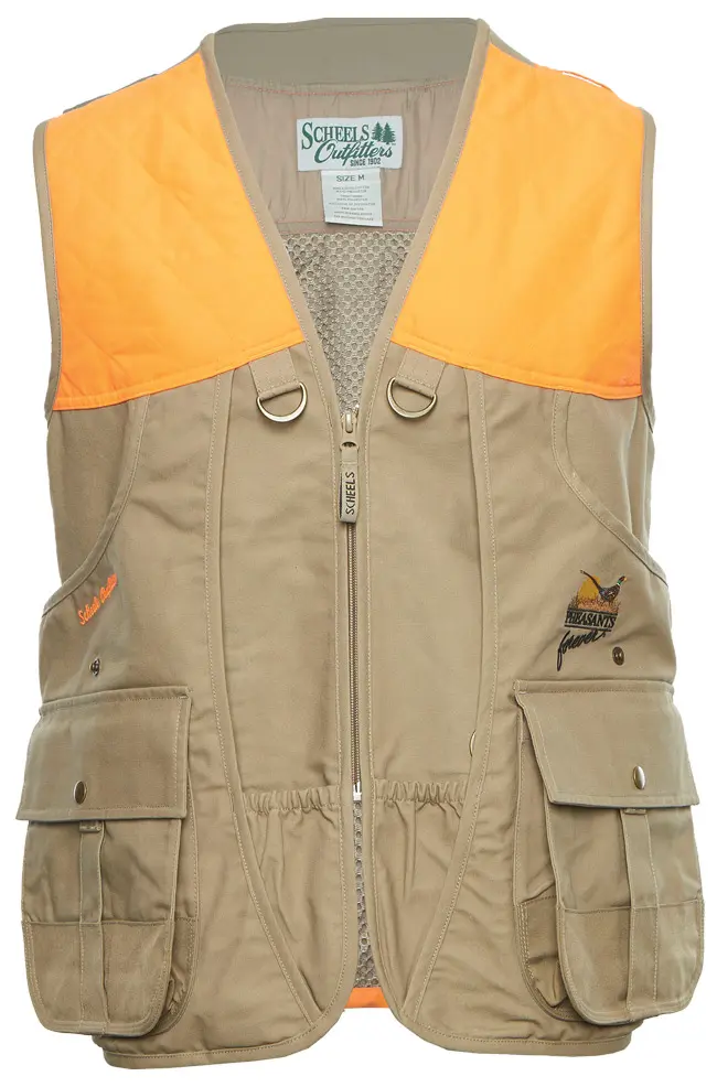 Of special note to wingshooters is that this fall Scheels has begun rolling out a revamped line of upland clothing and dog products. It includes several pairs of pants and shirts, a traditional upland vest (pictured), a strap vest, shooting gloves, a shotgun case, a dog vest, and a kennel cover and pad. Several of the items have been cobranded with Pheasants Forever.