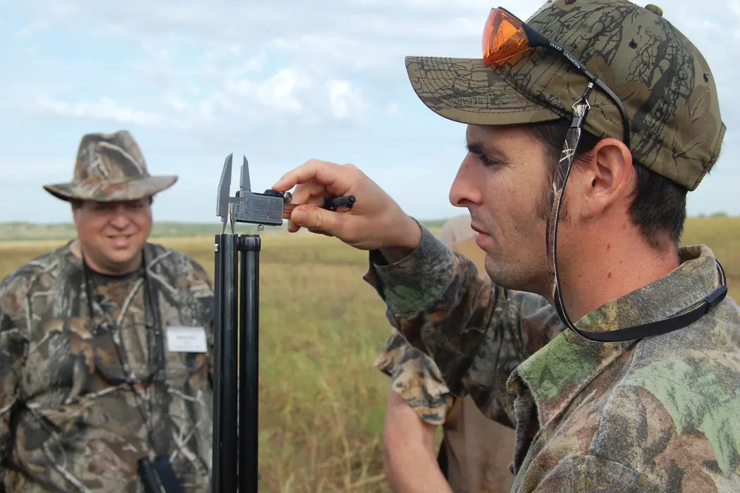 Each day the participating dove hunters came to a check station, where they received 100 rounds of encoded ammunition, a blind site and a trained observer—all randomly assigned. The observers recorded the number of shots fired for each attempt at dove(s), the load code, the choke used, the distance of shots fired (measured with a laser rangefinder), and the result to each dove according to four principle behavioral definitions: dead or immobile within 30 seconds, mobile but retrieved, visibly hit but not retrieved, and missed.