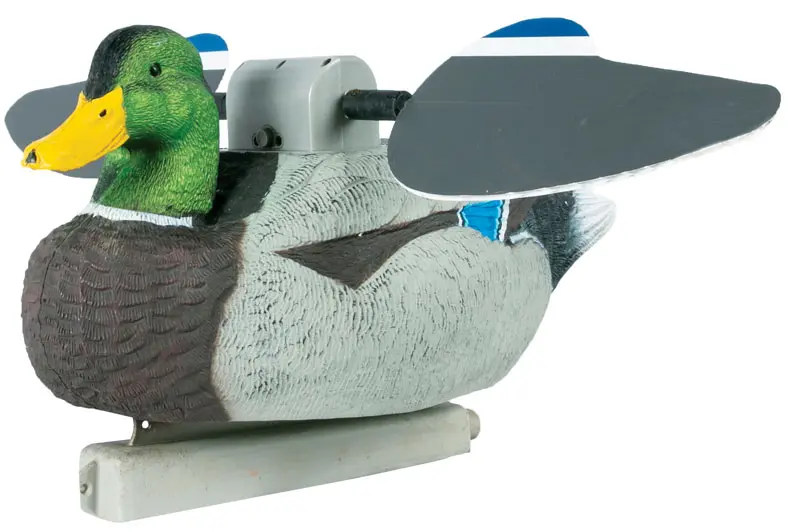 Pole-mounted spinning-wing decoys are great—until you have to set up in deep water or swift currents. Enter the Lucky HD Floater from Lucky Duck. This oversized decoy sits on the water with the rest of your spread, and its magnetic corrugated wings generate a large duck-attracting flash. It has a weighted keel and a waterproof “brain box” that slides into the top. The Lucky HD Floater will run for 12 to 14 hours on 4 AA batteries and will operate with an HD Remote Kit 2.0 (sold separately). It is available as a Drake Mallard or a Bluebill.
