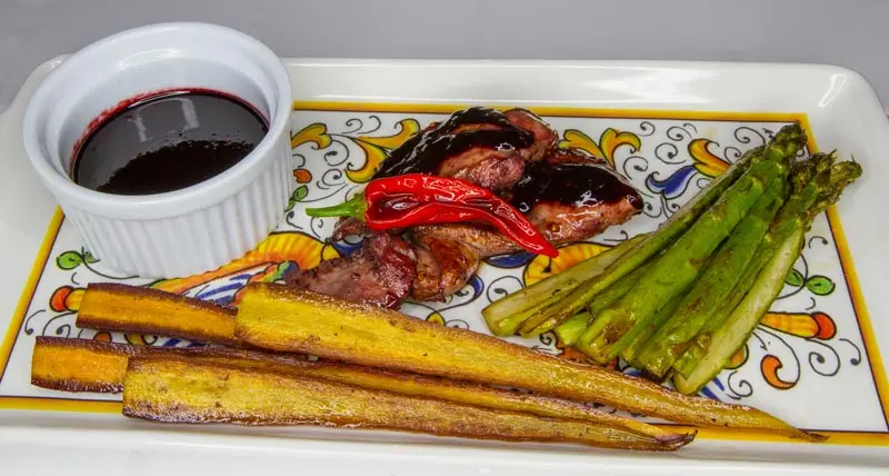 Sooty Grouse with Soy-Huckleberry Sauce