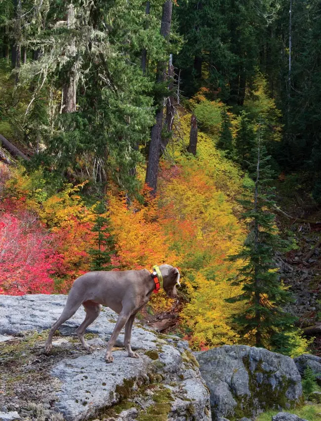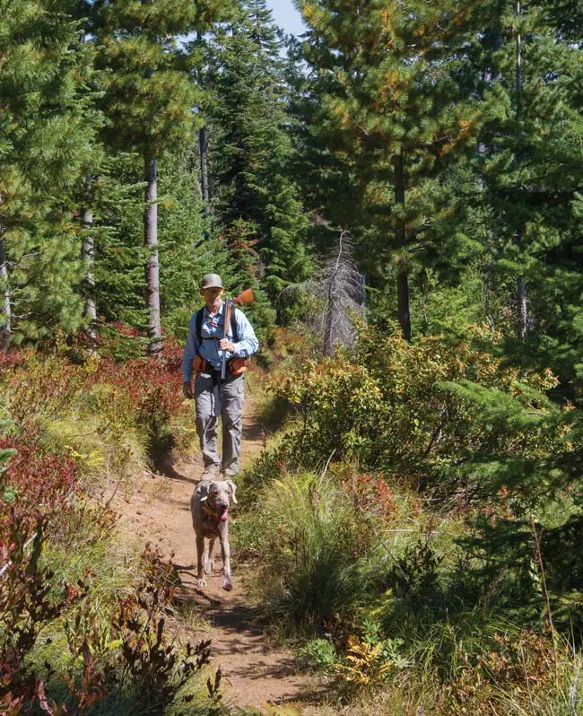 I passed up shots at a few hens and young birds (much to Java’s dismay), harvested a few edible mushrooms, marveled at a fearless pileated woodpecker I met face to face, walked in the shadows of 500-year-old Doug firs and nearly stumbled into a herd of elk. Onward we hiked—two, sometimes three days each week—into mid-October, amassing probably 60 trail miles and at least a half dozen off trail.