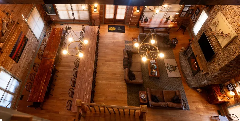 Our lodge has 16 rooms total: eight private king/queen bedrooms and eight semi-private rooms with two queen beds in each. We also have a cabin that was built in 1846 and updated with all the modern conveniences. The cabin beautifully accommodates up to eight hunters and offers a more rustic, secluded setting for extra privacy.