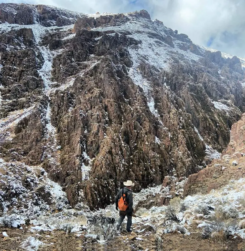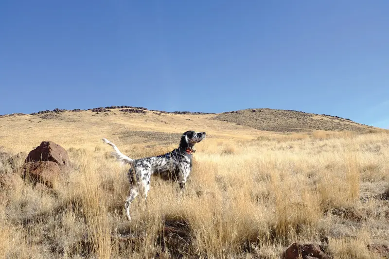 I’d started the first morning of the trip low on sleep, overweight and needing to get my chukar legs under me. I took the young setter and started moving. Maggie made a great sweeping arc, at a dead run climbing a hill I had avoided. I followed her on a path of least resistance, climbing but at a gentle pace. And then she stopped. The Garmin said she was pointing, 425 yards away, straight uphill. I climbed like a mad man, panting, slipping on the ice-covered scree. I reached the summit, and she came right to me, happy as only a bird dog afield can be.