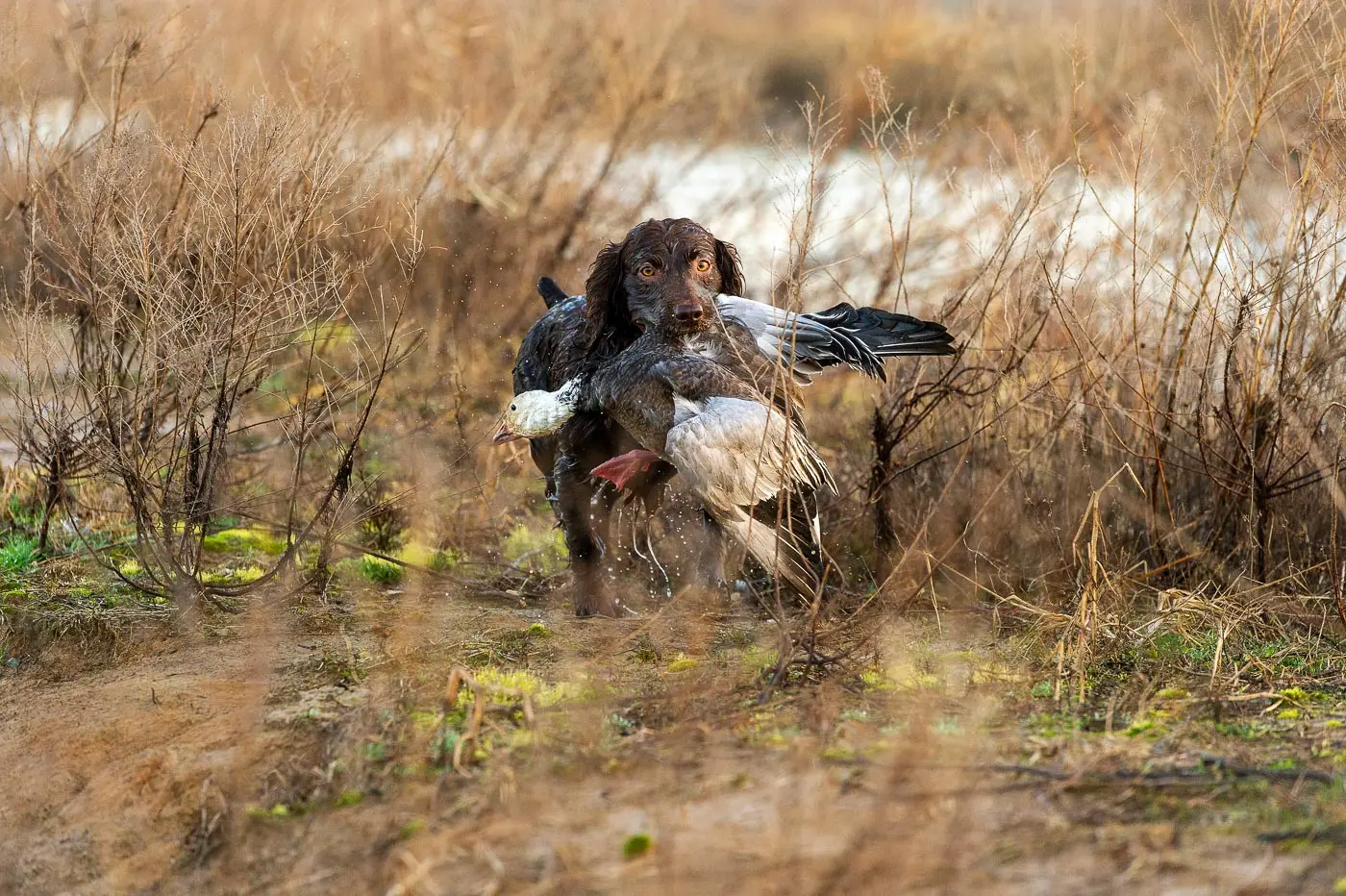 “They’re great for hunting wood ducks in our Southeastern swamps and beaver ponds—that’s what they were bred for—but I’ve trained Boykins whose owners use them very successfully in green timber, ricefields, even on Chesapeake Bay. Retrieving geese is no problem for them; in fact, I just trained a Boykin for an outfitter in Texas who specializes in field hunts for light geese from layout blinds.”