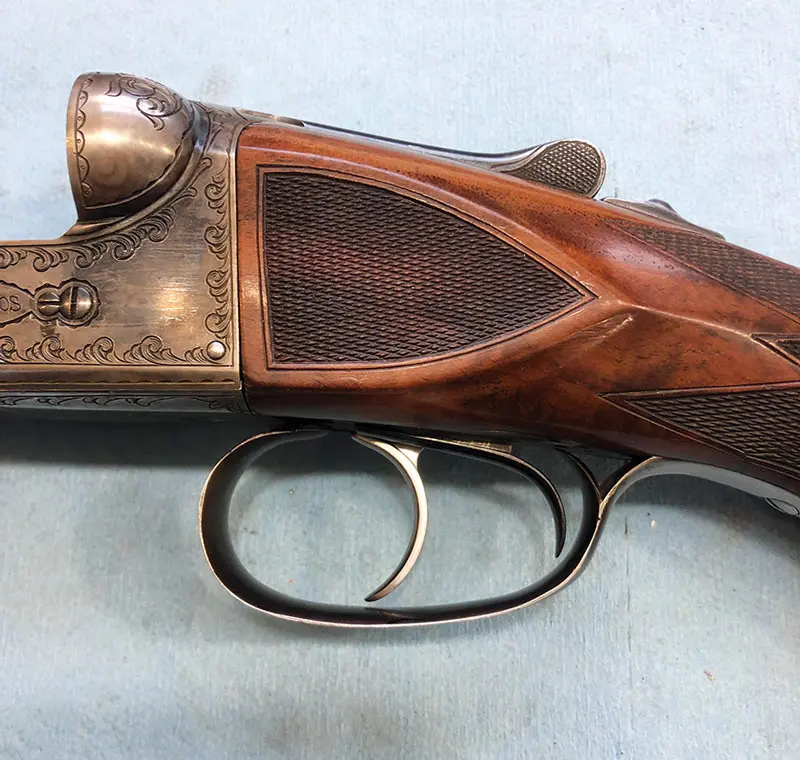 Though aspects like toplever function cannot be changed easily, triggers can be modified readily either to accommodate the dominant hand of the shooter or simply make for a more comfortable gun. Broken triggers, like that on the aforementioned Parker, can be rebuilt to proper proportions entirely. Occasionally a new blade can be grafted onto the existing trigger and shaped accordingly. More often than not, a trigger can be bent and re-canted by heating it with an oxyacetylene torch, bending it gently, filing for shape and refinishing. All these processes are relatively common fixes. In a custom-gun build it is vital that trigger positioning be assessed by the fitter and addressed by the gunmaker. This ounce of extra attention will result in a ton of satisfaction for the shooter down the line. Proper triggers will look, feel and shoot better than those that are given a cursory one-size-fits-all build.