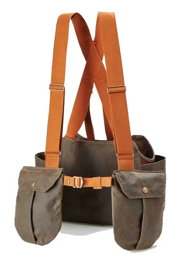 For a traditional bird-and-gear carrier with classic good looks, the Tom Beckbe Strap Vest is hard to beat. The vest is made of 8-oz waxed shelter cloth and features two fully lined gusseted front pouches, two interior snap pockets, a generously sized game bag and two water-bottle pockets. Adjustable cotton-webbing shoulder straps are treated to dry quickly and resist mildew, and there are adjustable side straps and an adjustable waistband. The open-back design offers breathability and easy access to the game bag.
