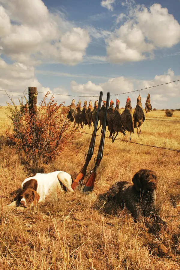 The familiar routine of uncasing guns and unloading dogs from the pickup is reassuring to nerves frayed by the long flight from Atlanta to South Africa. Advancing uphill behind four English pointers soon lifts spirits. The exertion warms us in the chill mountain air. Then comes a flush like a burst water main as partridge become aware of the creeping danger. A couple of shots echo to the distant horizon, and a brace of birds drops to the scrub. Like red grouse or bobwhite quail, gray-winged partridge belong to the aristocracy of gamebirds. They rise fast and high and are regarded as South Africa’s finest sporting bird, offering classic shooting in a pristine environment.