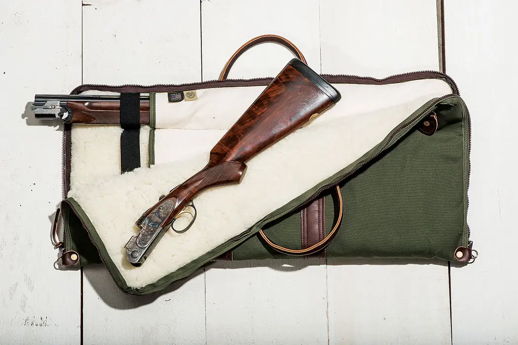 Gun slips are made in everything from light roll-up fabric to heavy, zippered sheepskin-lined leather. Whether thick or thin, they must be sturdy enough to protect a gun when it is not in use. For transporting a gun from the house to the car to the shoot, slips need sturdy straps and zippers, and they have to be able to dry quickly, so that moisture from the field does not leave you with a soggy slip in which to slide your gun. I also like simple gun socks, treated with silicone for discouraging rust while storing guns in the safe.